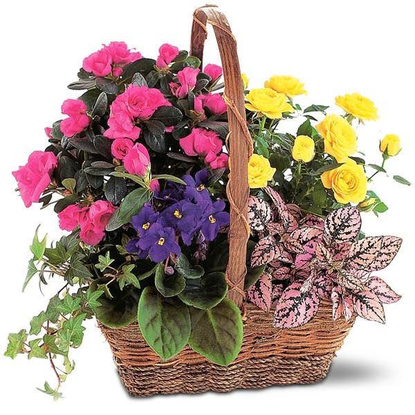 This lovely basket with its blooming plants offers those you care about lasting kindness, consideration and compassion. Approximately 14" W x 14" H